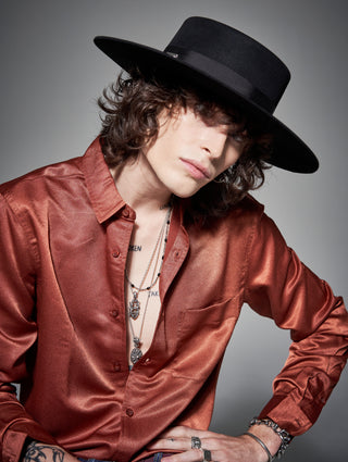The "WANDERER'S hat". Il viaggiatore, il giramondo. Inspired by the Andalusian hat, it is dedicated to the most adventurous people of this world. Hand made in Italy with 100% pure rabbit fur felt, this is a true piece of Italian craftsmanship. Style your freedom with this luxurious hat, enjoy every moment. Stand out from the crowd!