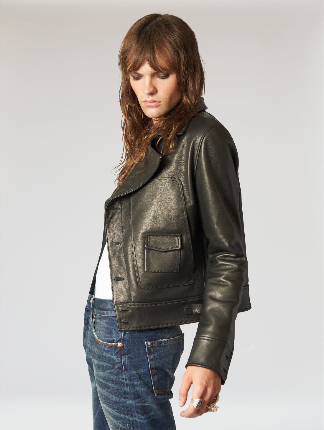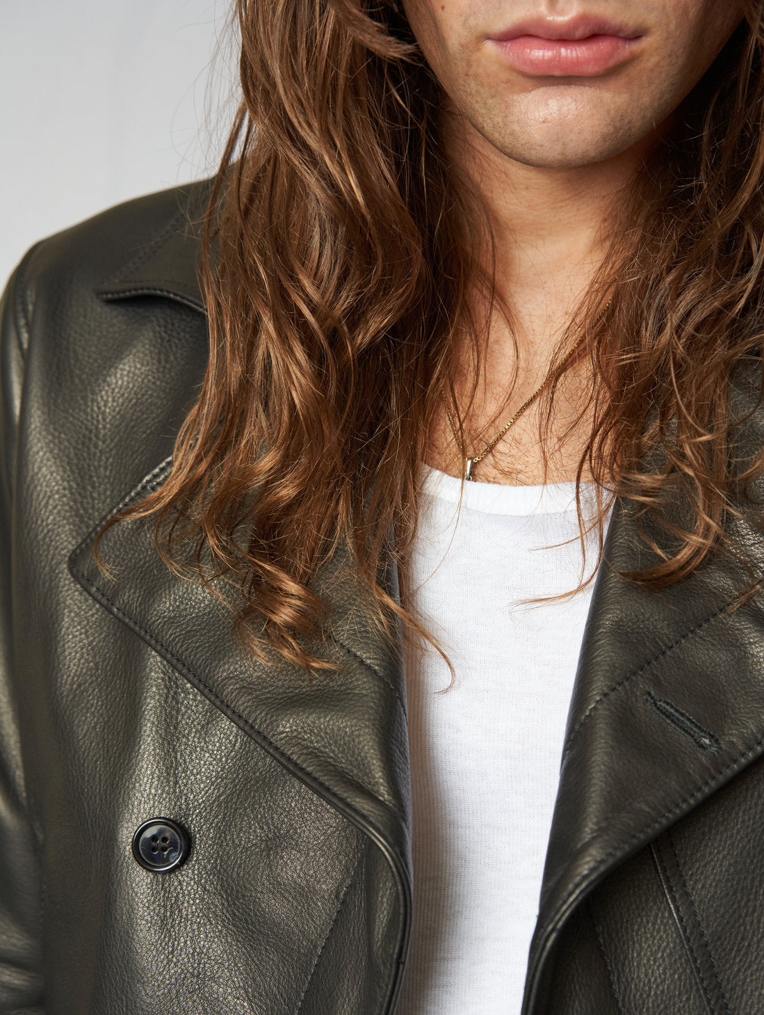 Inspired by some of the 1930’s aviation leather jackets, the LUCAS is not the usual biker jacket. With the very accentuated collars, the particularly oblique cut and buttons closures, it is realized with a luxurious heavy calfskin leather. It has two internal pockets, two exterior side pockets plus one small front pocket. Stand out from the crowd!