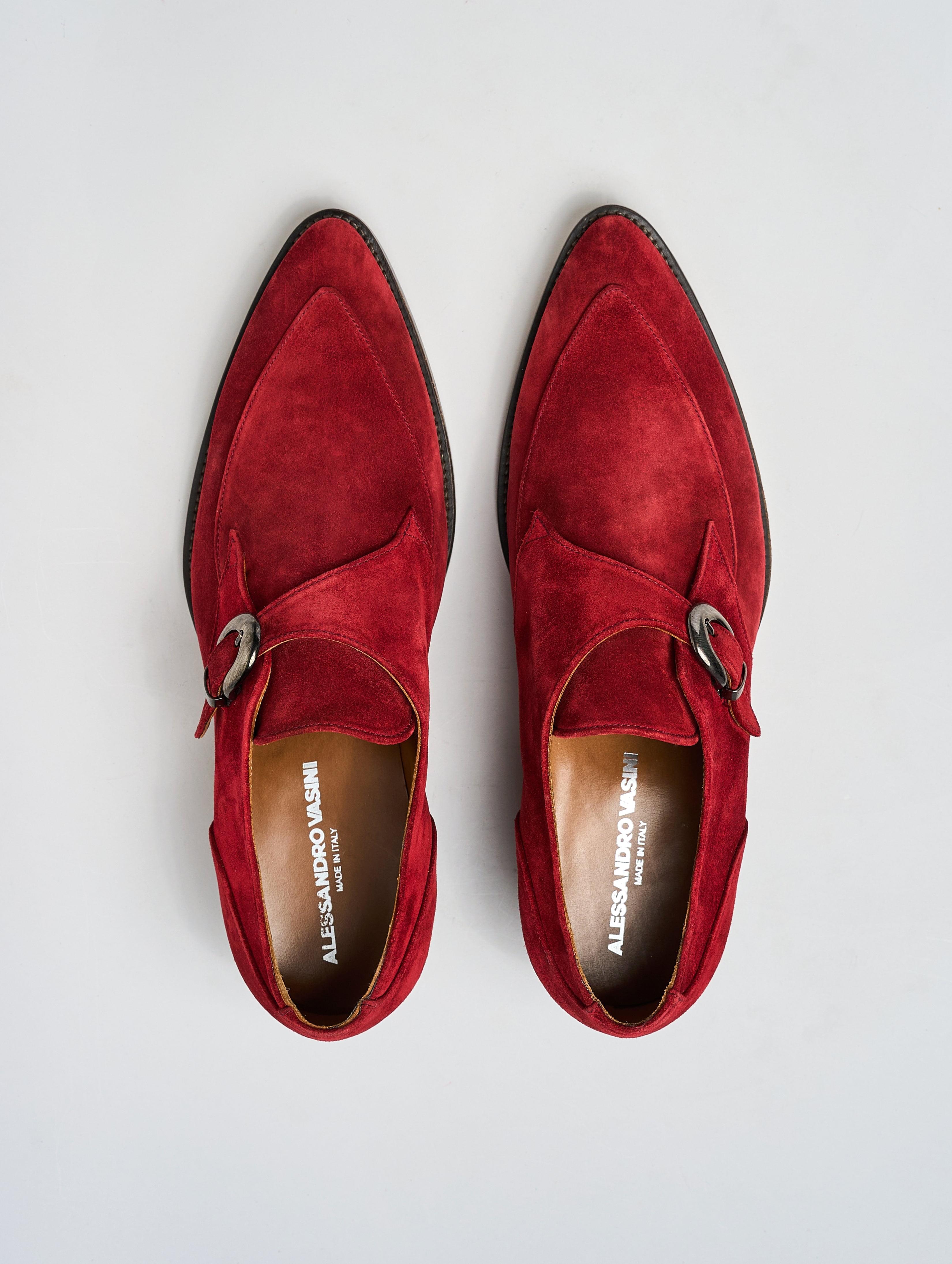 ADRIAN 30MM MONK-STRAP IN RUBY RED SUEDE
