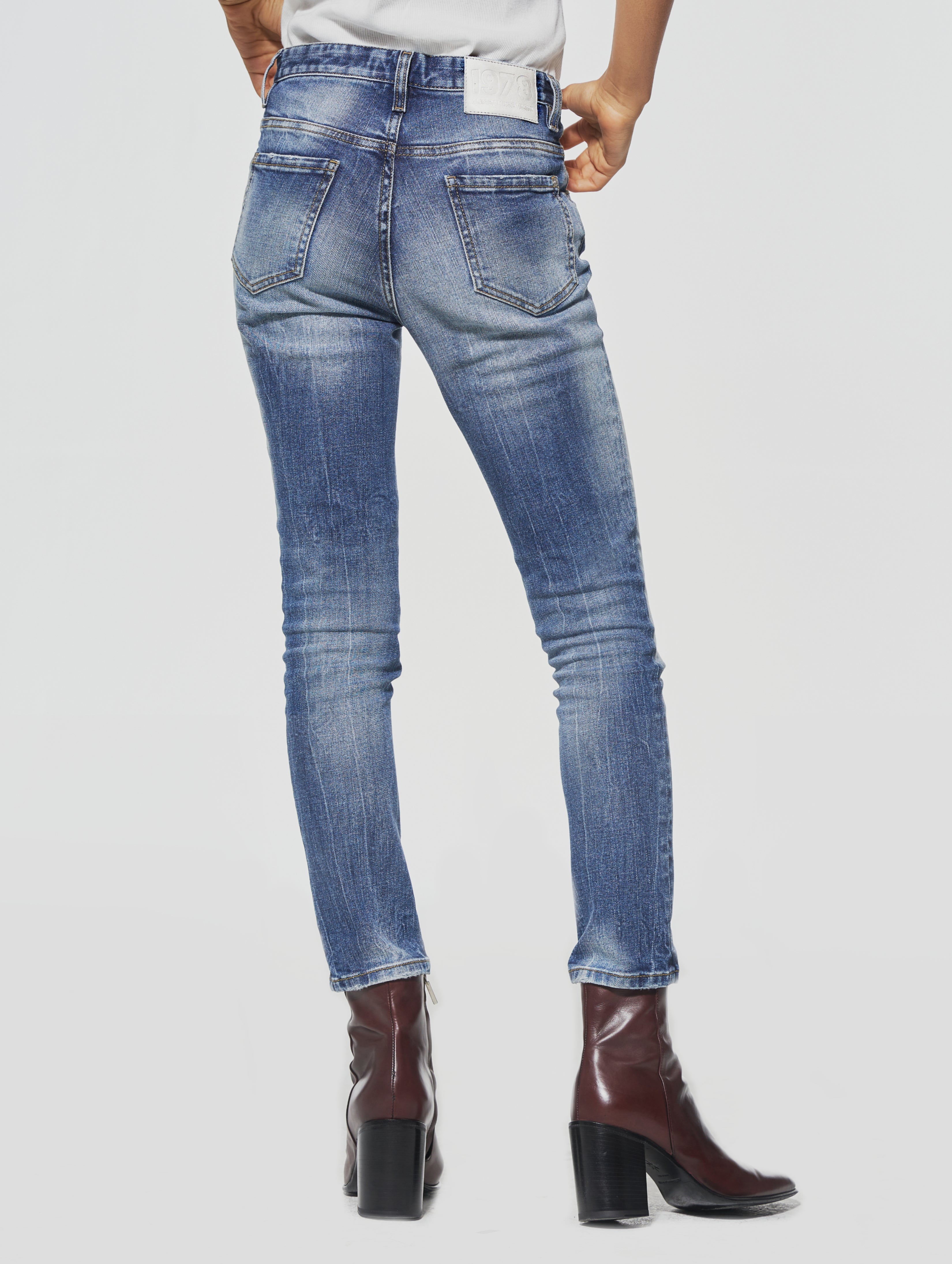 The perfect skinny jeans. Joan the skinny is made in Italy with a luxury Italian denim fabric, washed to perfection to bring this vintage look and finished with our 1978 silver buttons. Stand out from the crowd!