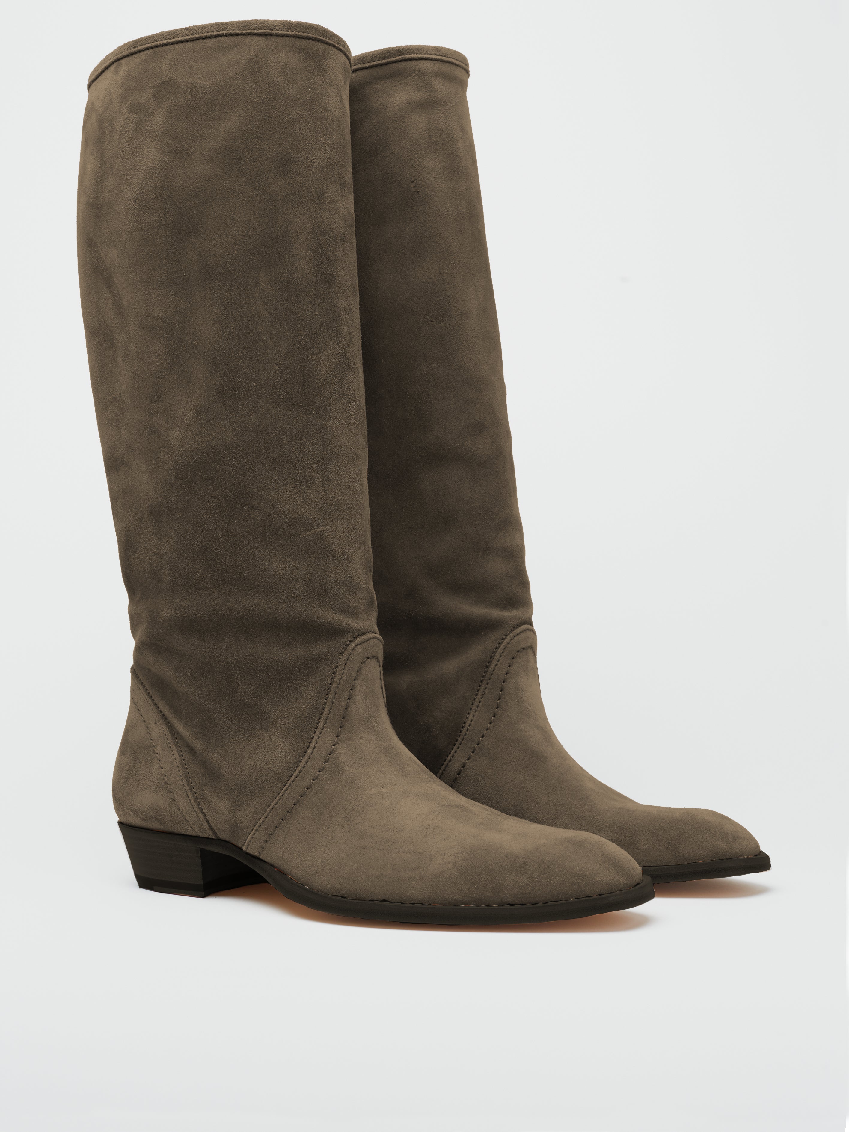 Blake stitched, on a 30mm leather heel, they are hand made in Italy with a luxury calfskin suede, very soft and comfortable.. A must have in your boots collection!