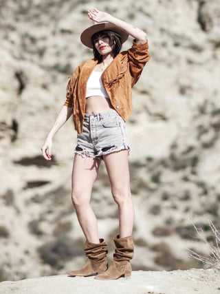 KEITH ROLL DOWN BOOT IN SMOKE SUEDE - Woman