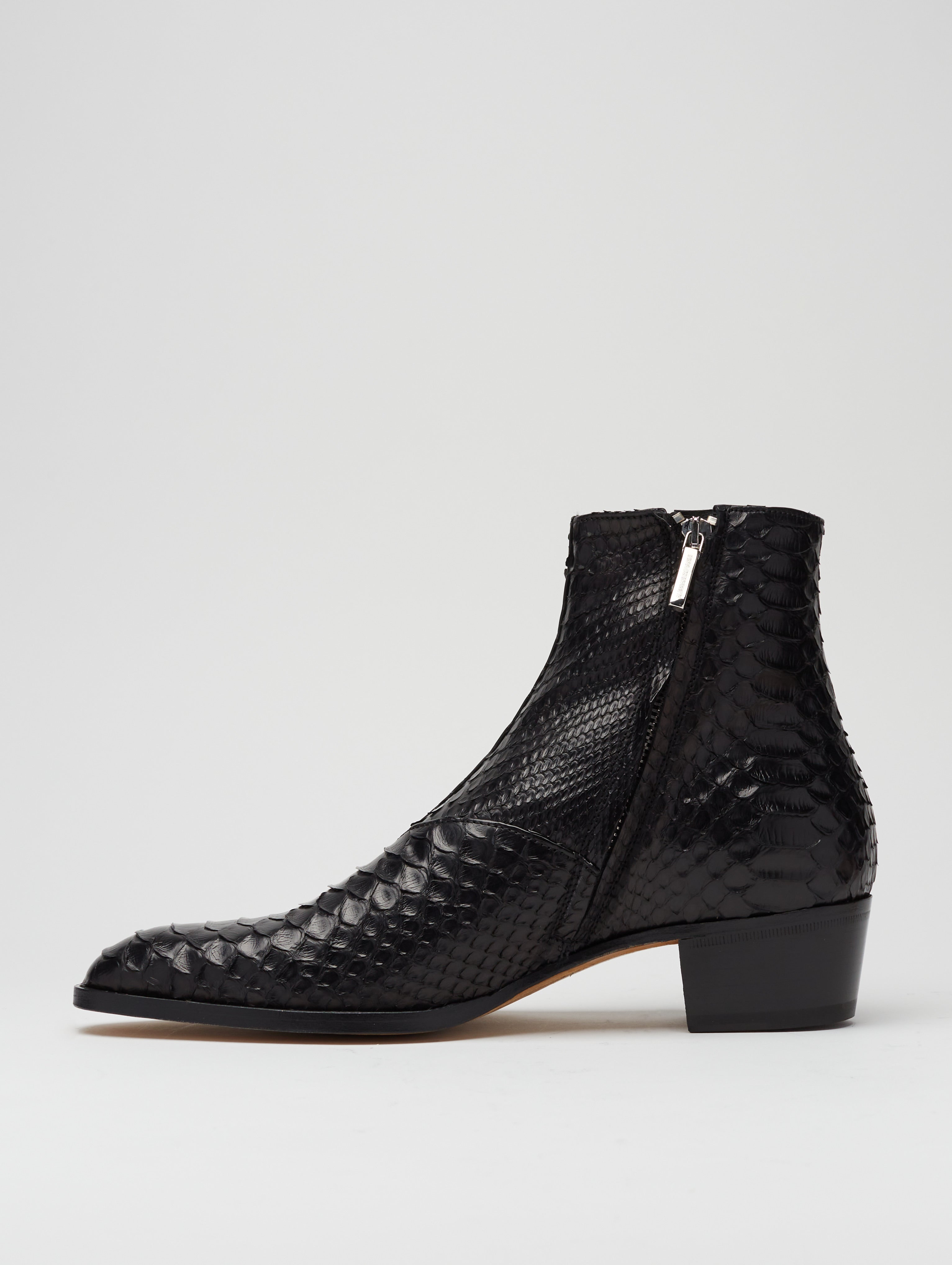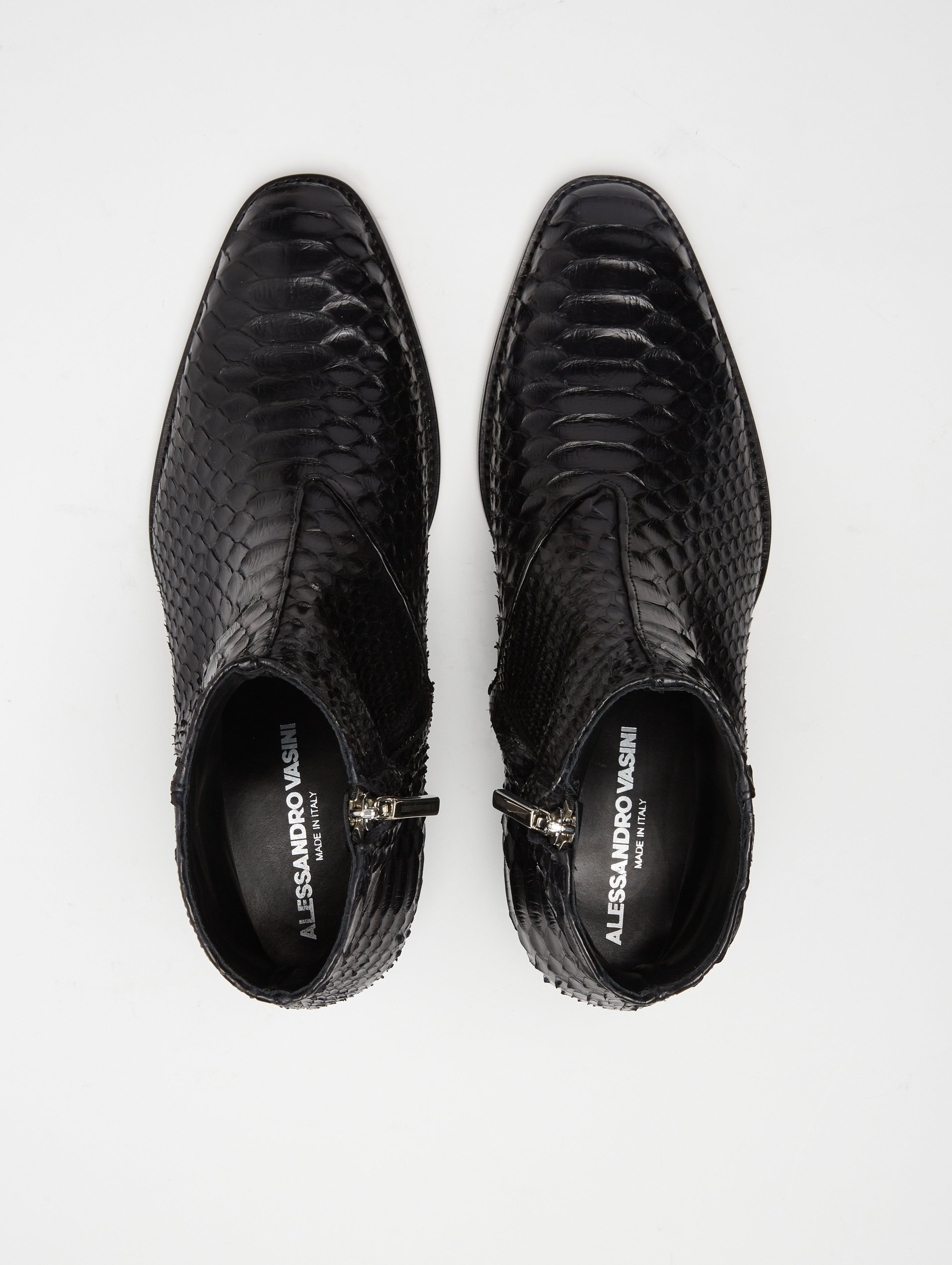 Inspired by the Beatle boot of the 60's, SONNY ankle boot is Alessandro's favorite. This Special Edition is realized in a chic black Python (this is real Python snakeskin) and a thicker sole and heel, but still carrying the same very sophisticated silhouette of the original SONNY with a close fit in the ankle as it is supposed to be for a true Rock'n'Roll style.